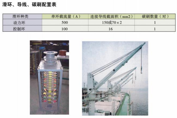 根据船用吊车上使用电制( AC380V 50Hz、 AC440V 60Hz )和滑环极数的不同,以及需要带回转限位装置和不带回转限位装置两种情况,总共罗列出24种中心滑环箱的型号规格。这24种规格基本上覆盖各种常规吊车的使用。AC380V电制时主环使用300A的滑环和碳刷,AC440V电制时主环使用500A的滑环和碳刷。