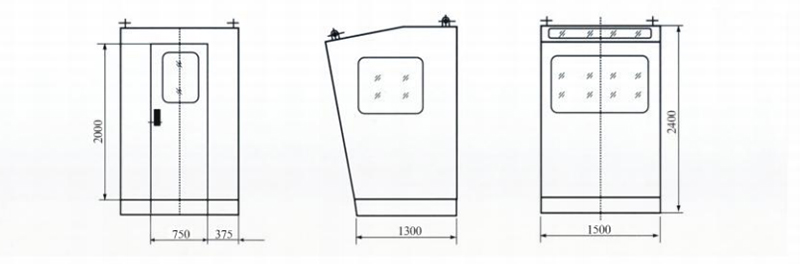 ■室内地板为可拆卸的4mm厚钢板,并在上部铺有防滑绝缘橡塑地毯。控制导线可在地板下的导线架上捆扎,电缆出线口进行电缆防磨损处理。如果室外带平台,平台上的地板为热镀锌格栅板。